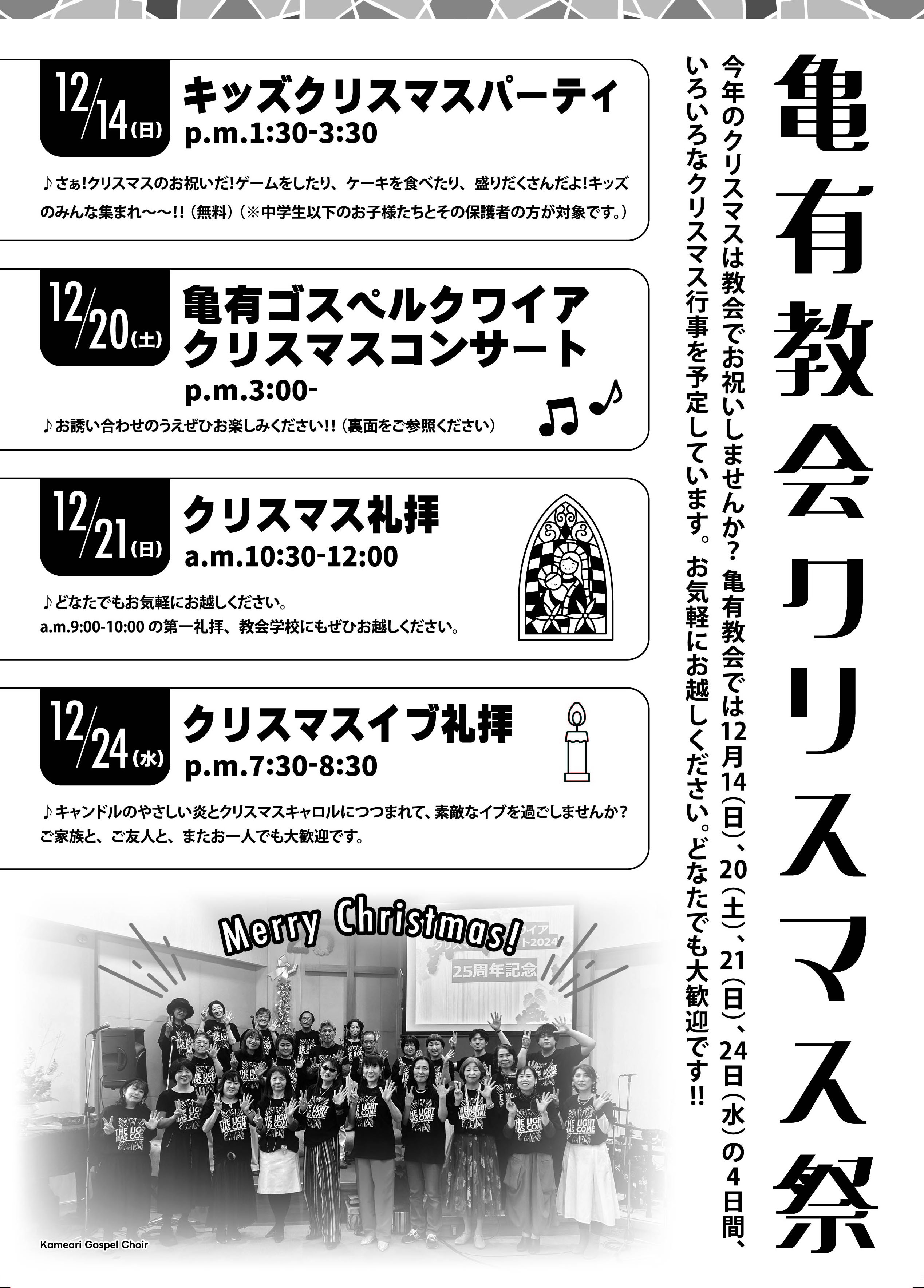 【亀有ゴスペルクワイア クリスマスコンサート vol.26】のお知らせ